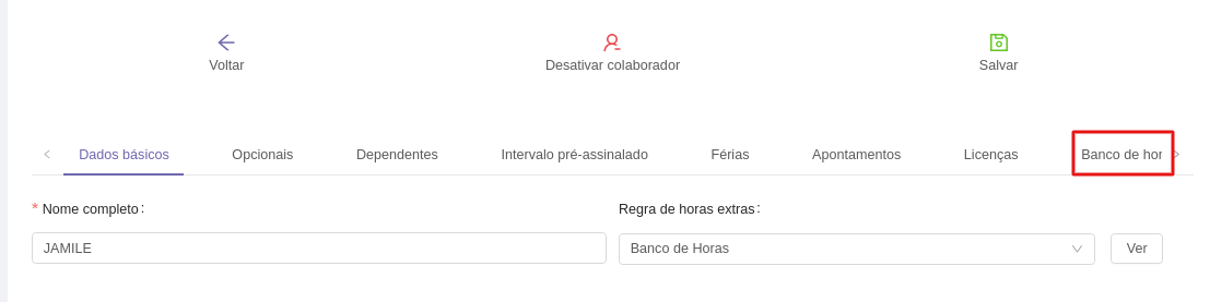 Clique na aba BANCO DE HORAS.