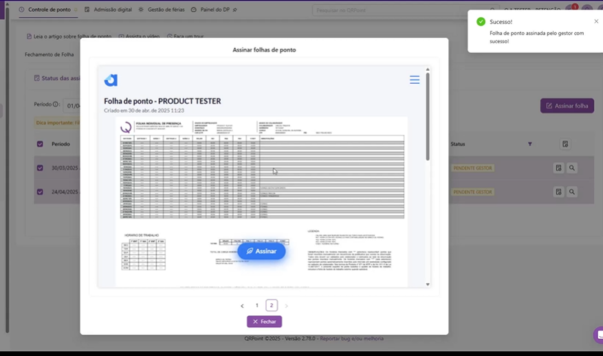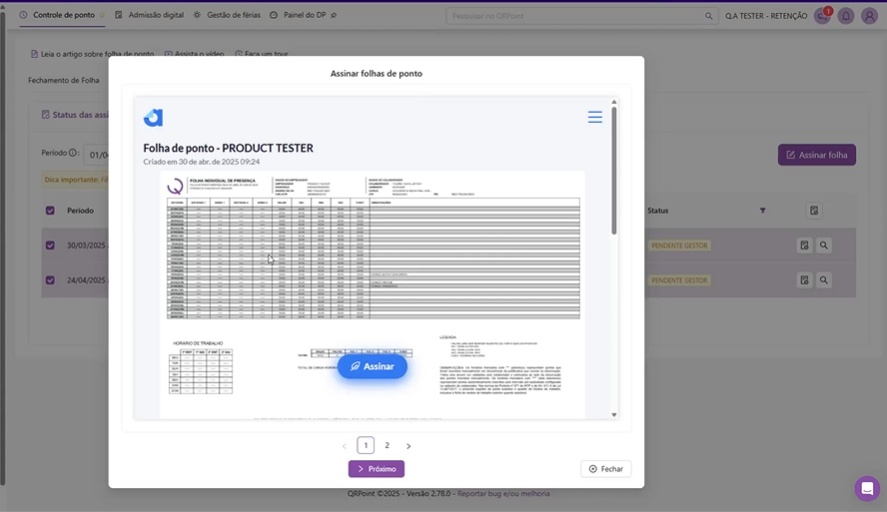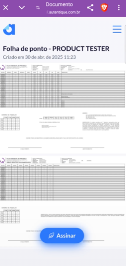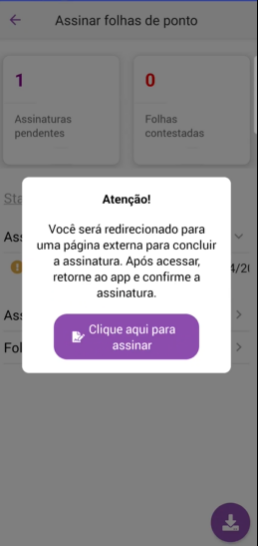 ✨ Nova tela: “Assinar folhas de ponto”