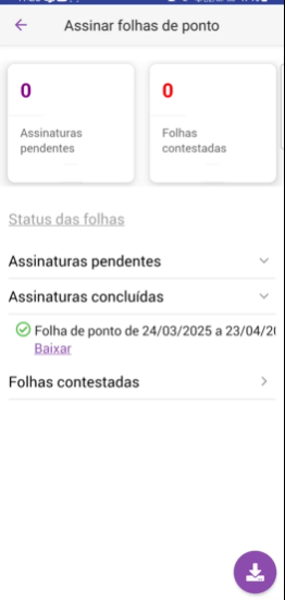 O app também ganhou a opção de baixar múltiplas folhas assinadas de uma só vez, facilitando o arquivamento e envio.