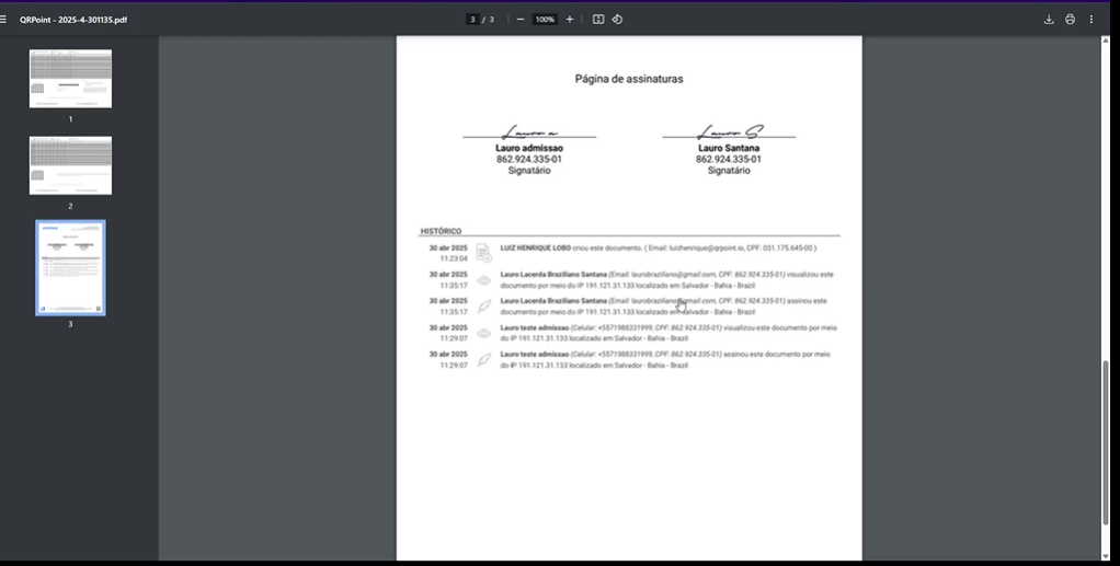 O sistema valida automaticamente se cada assinatura foi concluída;