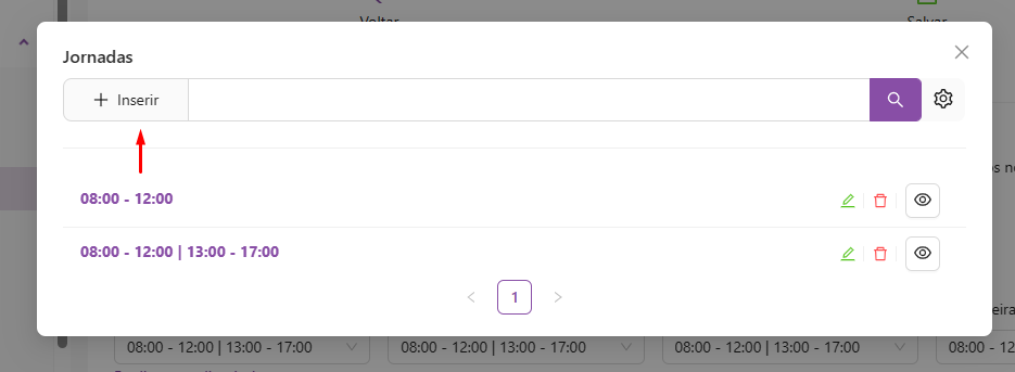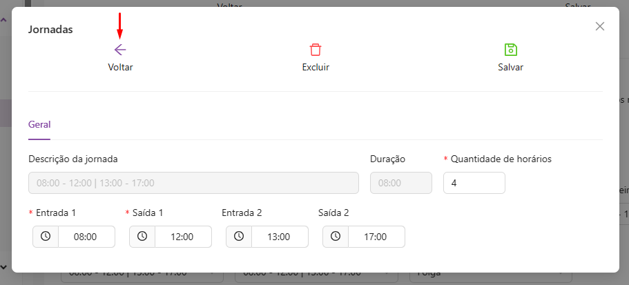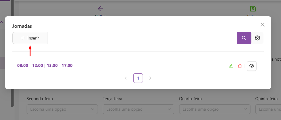 A seguir, você irá criar a jornada do sábado, clicando no botão "Voltar" e depois em "Inserir".