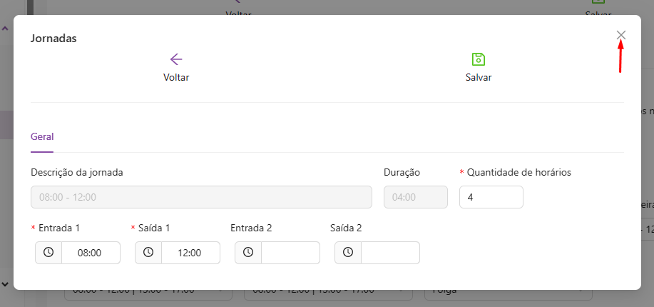 Então, você deve fechar a tela de criação das jornadas, clicando no "x".