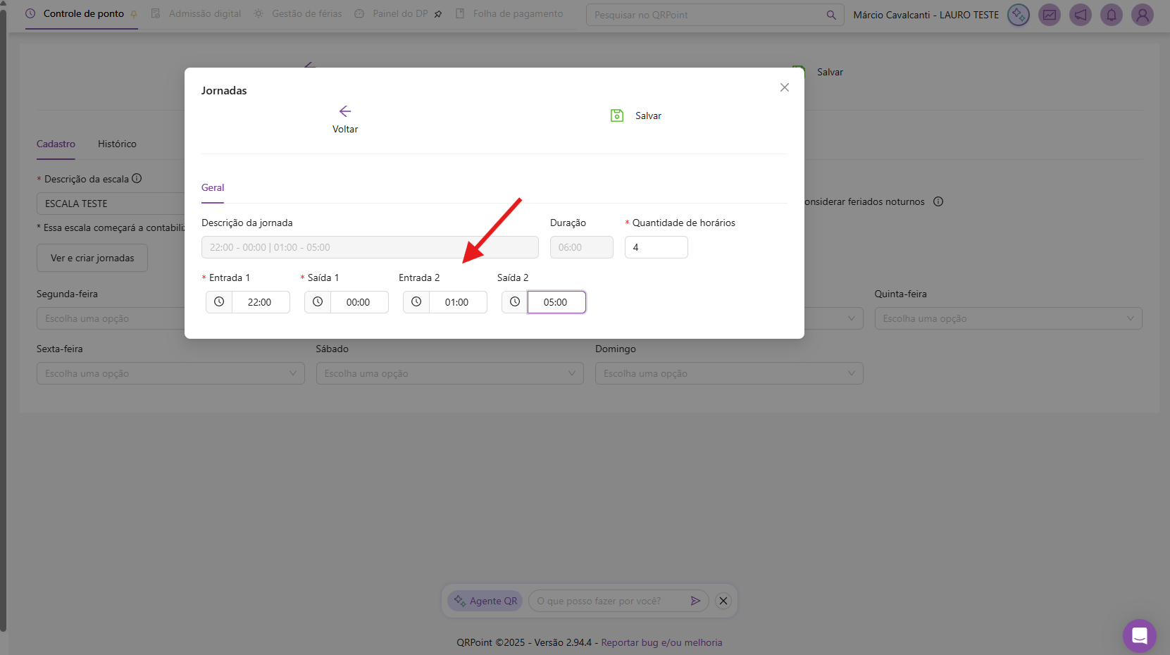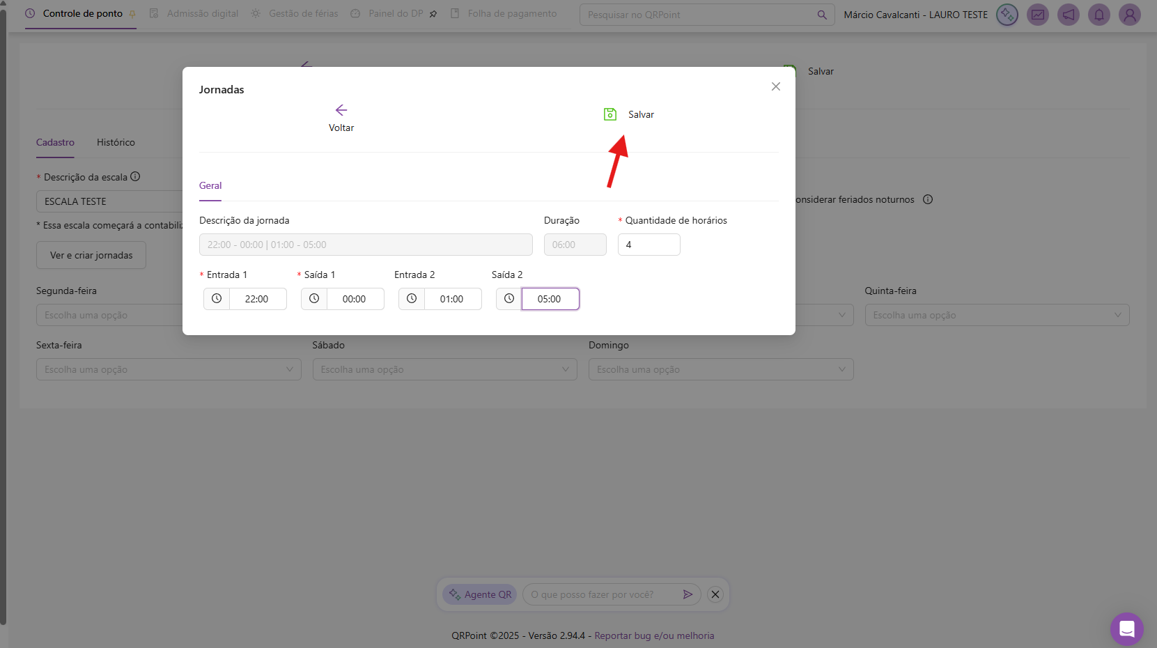 Tudo pronto! Você aprendeu a cadastrar uma escala padrão(Noturna) no QRPoint.