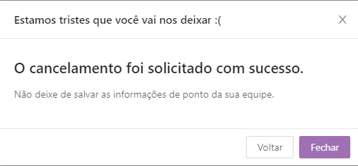 Pronto! Após o feedback, o cancelamento é solicitado e será efetuado no período de 30 dias.