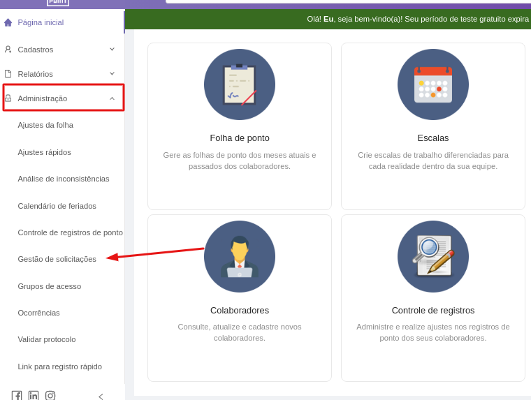 Se precisar revogar atestado médico, vá em ADMINISTRAÇÃO > GESTÃO DE SOLICITAÇÕES.