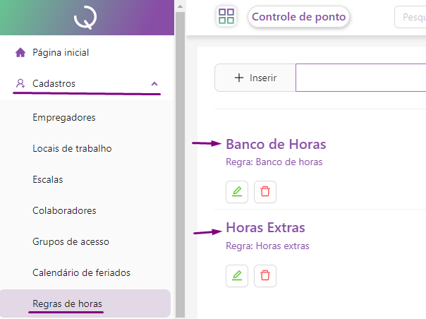 Acesse a tela de Cadastros > Colaboradores > Regras de Horas.
