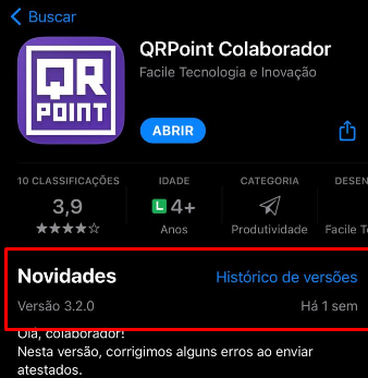 Como verificar a versão do meu aplicativo (QRPoint colaborador) e atualiza-lo? | QRPoint | Central de Ajuda