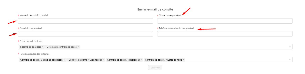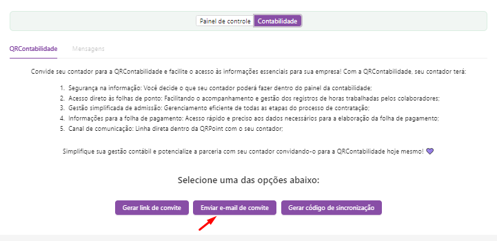 A segunda opção de convidar a contabilidade é a de ''Enviar e-mail convite''