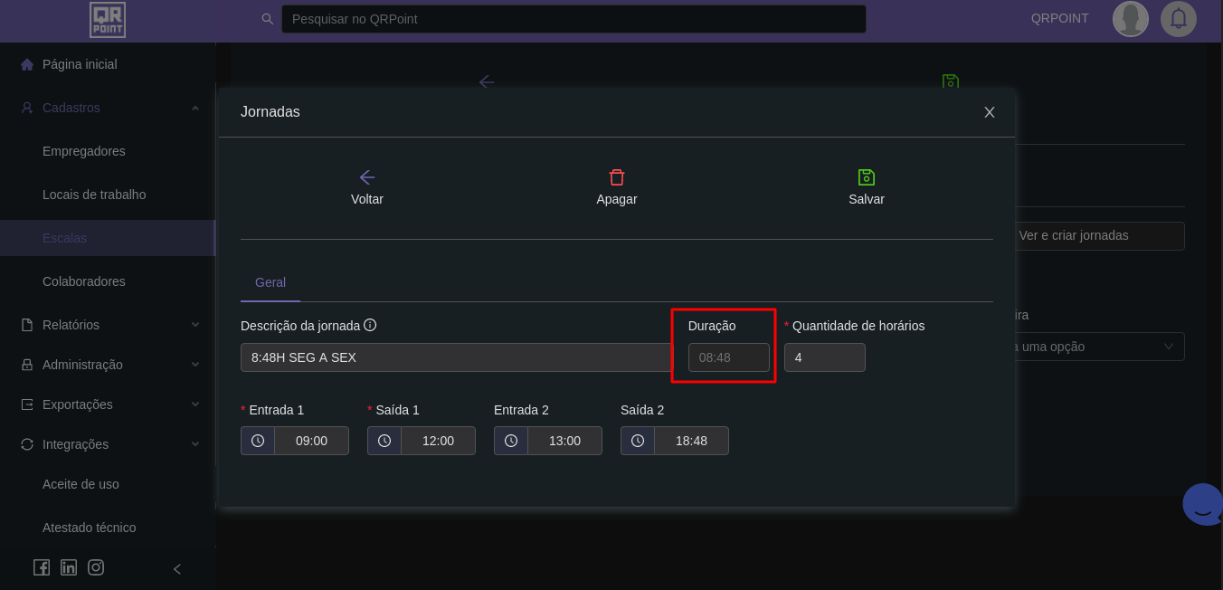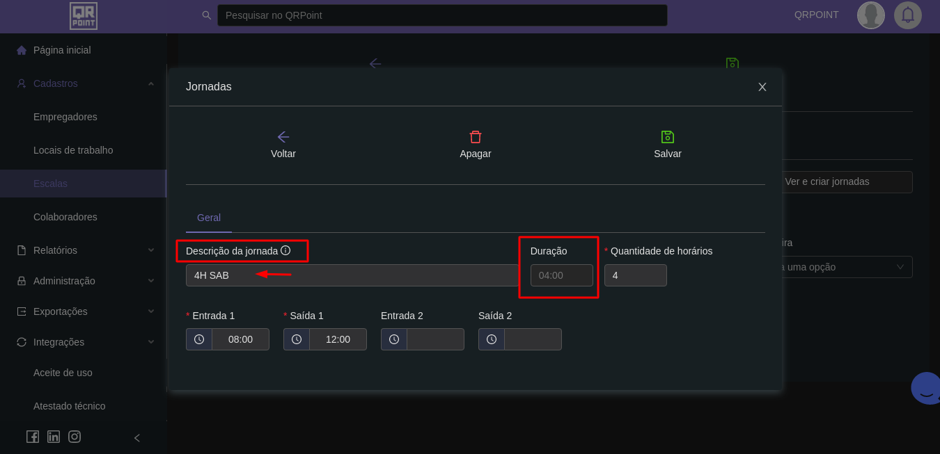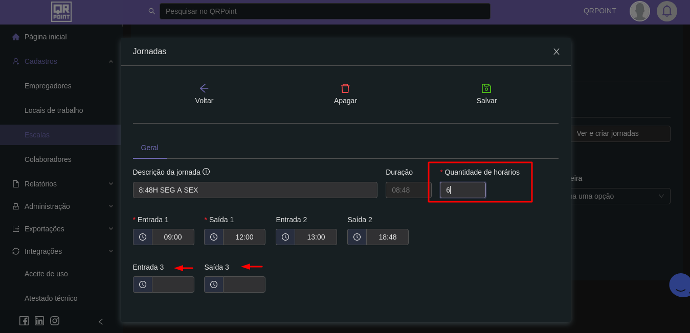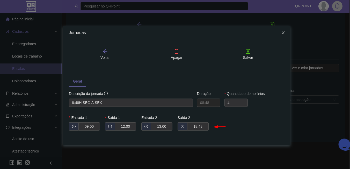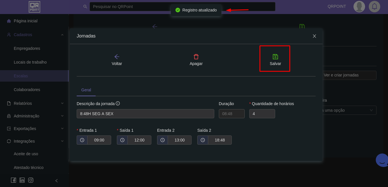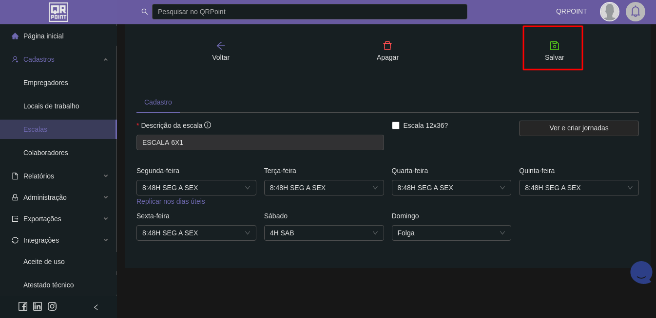 Agora basta clicar em "SALVAR" e fechar essa tela de criação de jornadas para terminar a configuração da escala.
