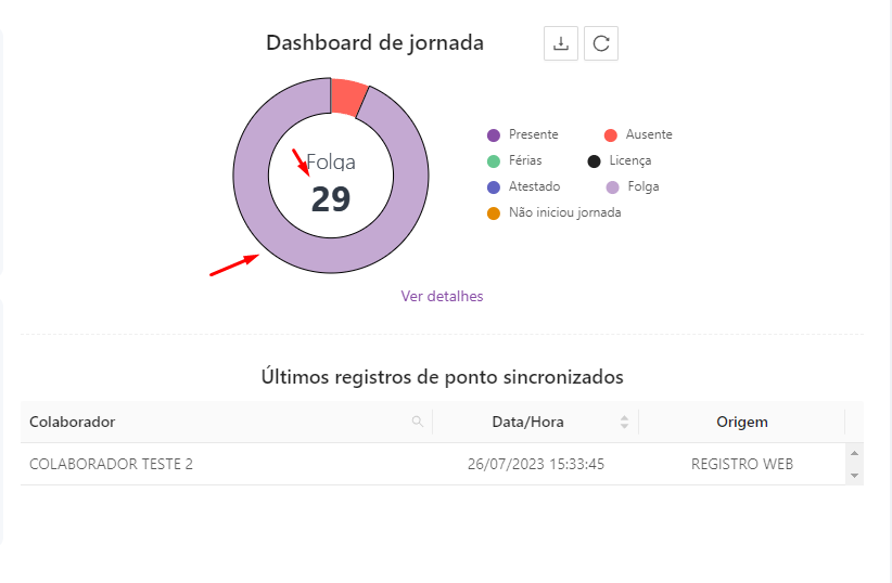 - Presentes: Total de colaboradores que registraram ponto no dia.