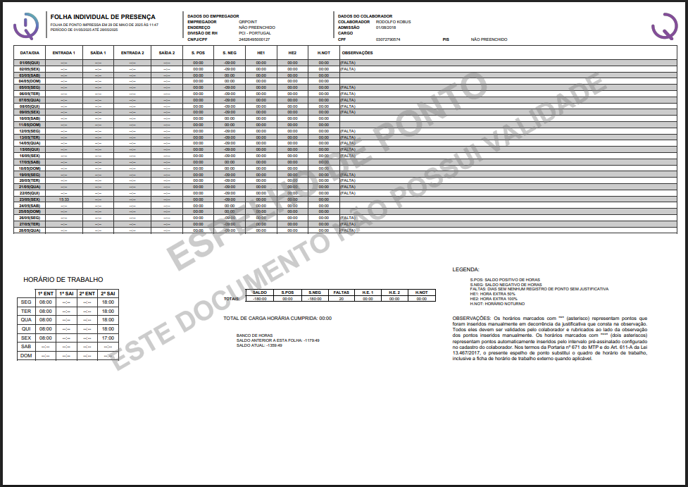 Entendendo a Folha de Ponto da QRPoint
