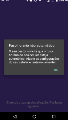 Ao tentar registrar ponto, você pode se deparar com uma mensagem de erro, informando que o QRPoint só consegue registrar a sua jornada com o horário e fuso horário definidos como automáticos.
