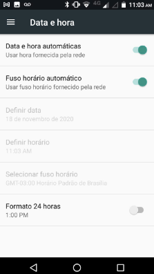 OBS2: A tela de configuração de Data e Hora pode variar entre os modelos de aparelho, caso o seu não apresente essas opções, entre em contato com o suporte.