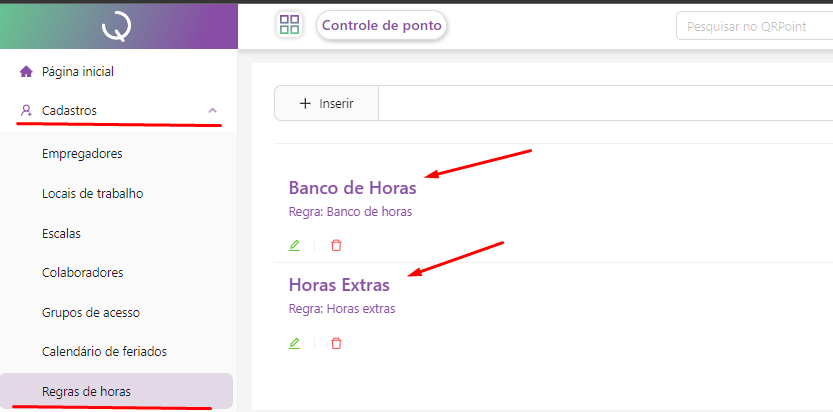 Para habilitar essa configuração, acessamos a tela de cadastros > regras de horas > e clicamos na regra que o colaborador ou colaboradores utilizam