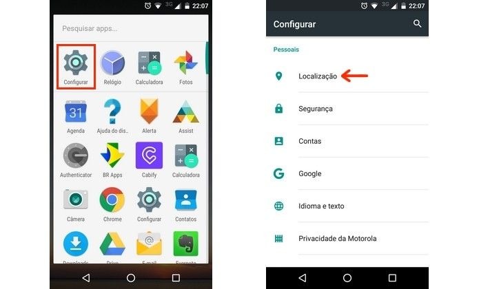 Passo 1: Você deve acessar as configurações de localização, no seu aparelho celular, como no exemplo abaixo.