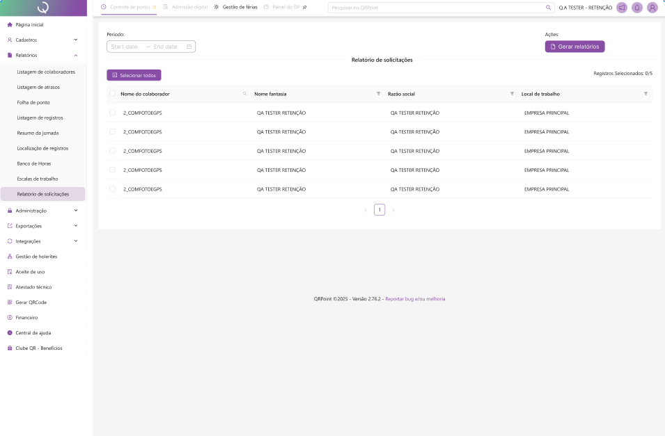 Pensando em oferecer mais transparência e controle sobre as solicitações feitas pelos colaboradores, a QRPOINT acaba de lançar uma nova funcionalidade no sistema: o Relatório de Solicitações (PDF).