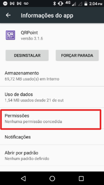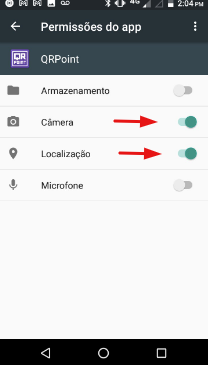 Para utilizar o QRPoint da melhor forma, é preciso dar algumas permissões ao mesmo, como o acesso a câmera e ao GPS do aparelho