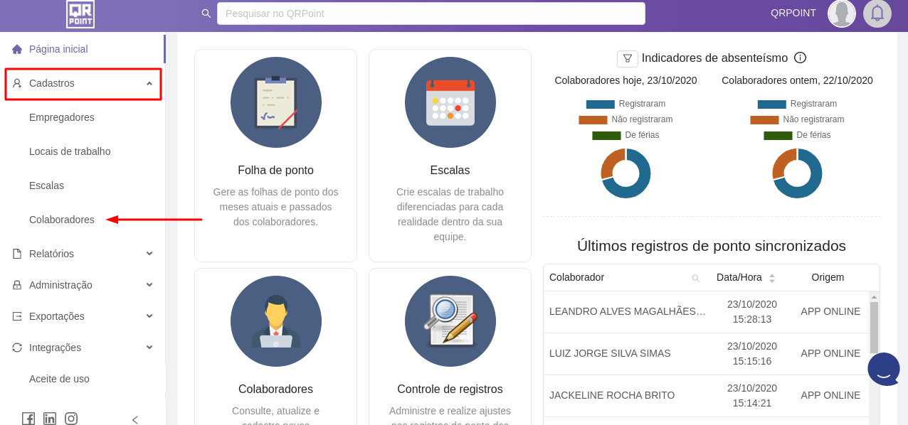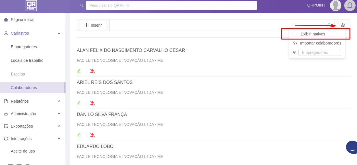 Em seguida, basta clicar no colaborador para entrar em seu cadastro