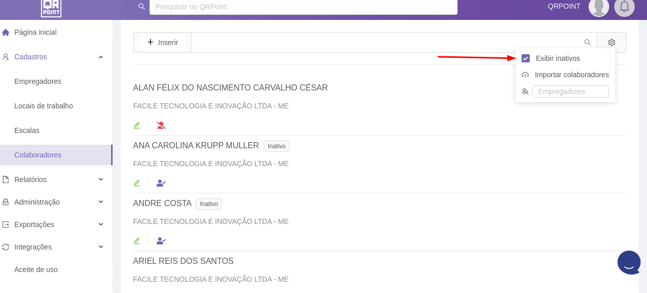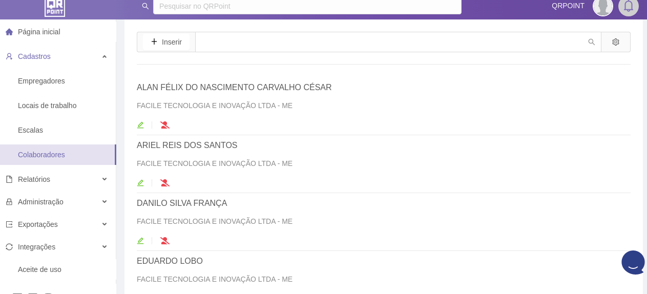 Logo em seguida abrirá a tela com todos os colaboradores da empresa