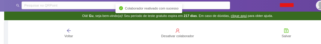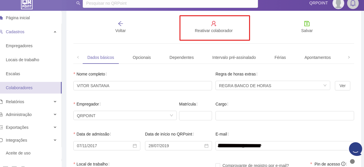 4º PASSO: Clicar em REATIVAR COLABORADOR
