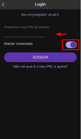 Além disso, você poderá deixar salvo seu pin, clicando em manter conectado, assim entrará automaticamente, se você for o único usuário do aparelho.