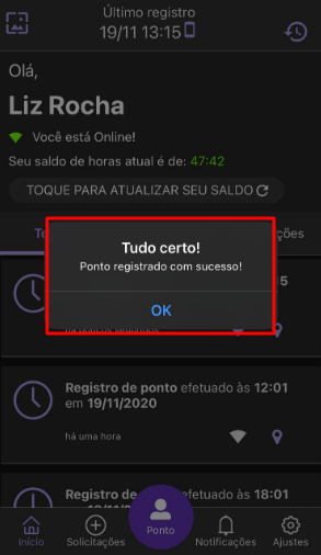 Você registrou o seu ponto.👏🏻