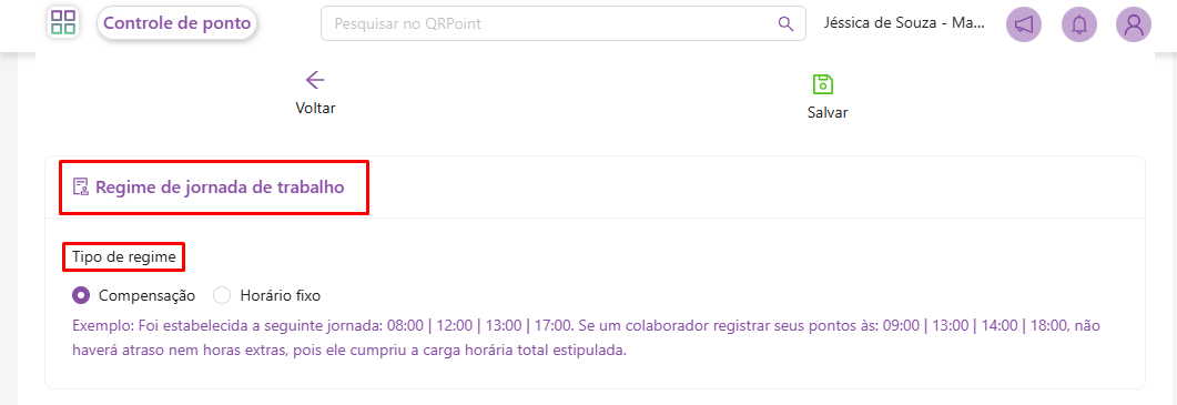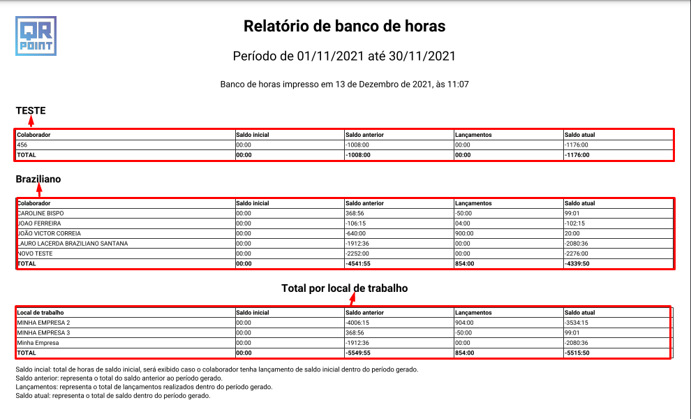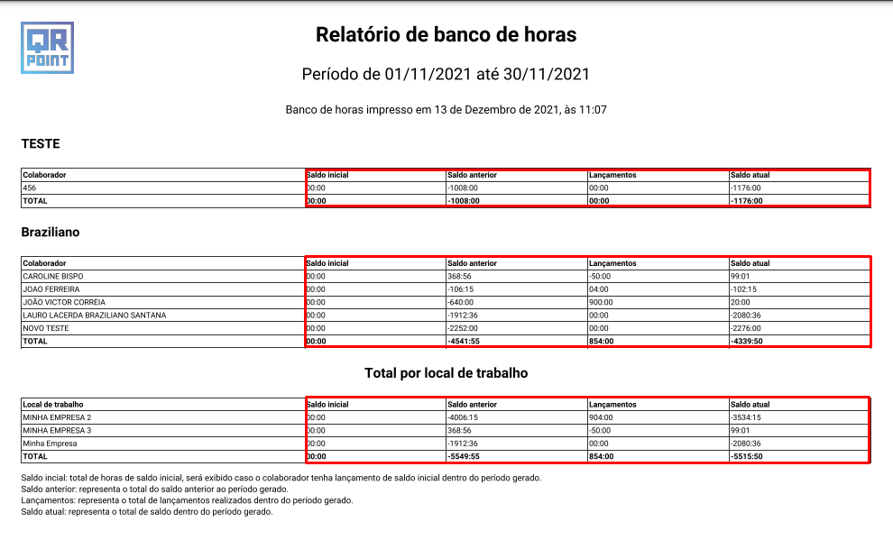 Saldo inicial: Mostra um saldo previamente lançado para o colaborador antes do uso do QRPoint.