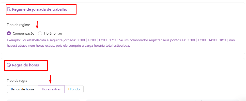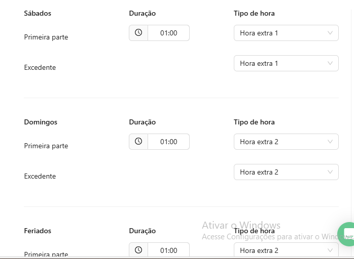 A configuração de horas extras segue os mesmos passos do banco de horas, com algumas diferenças: