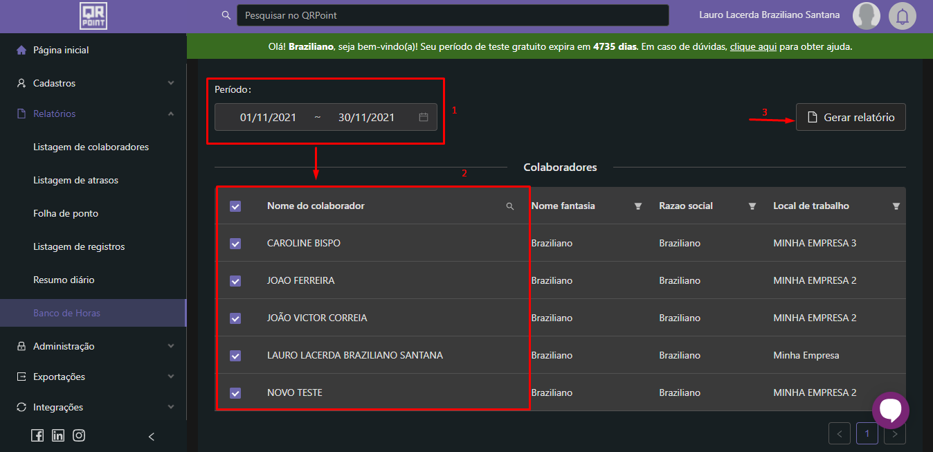 4. Selecione os colaboradores que deseja incluir no relatório.