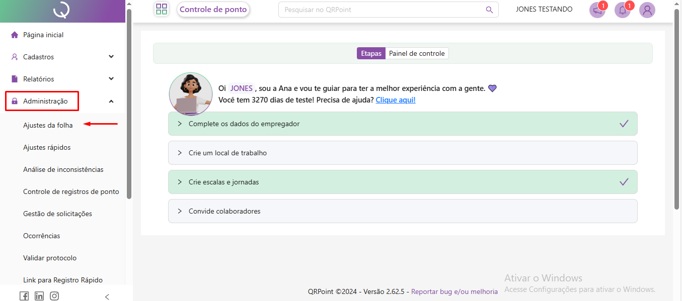 Para remover um Abono é mais simples do que você imagina. Para isso você deverá acessar o menu ADMINISTRAÇÃO > AJUSTES DA FOLHA > SELECIONAR O COLABORADOR > PERÍODO > LOCALIZAR AS DATAS QUE FORAM ABONADAS como mostram as imagens: