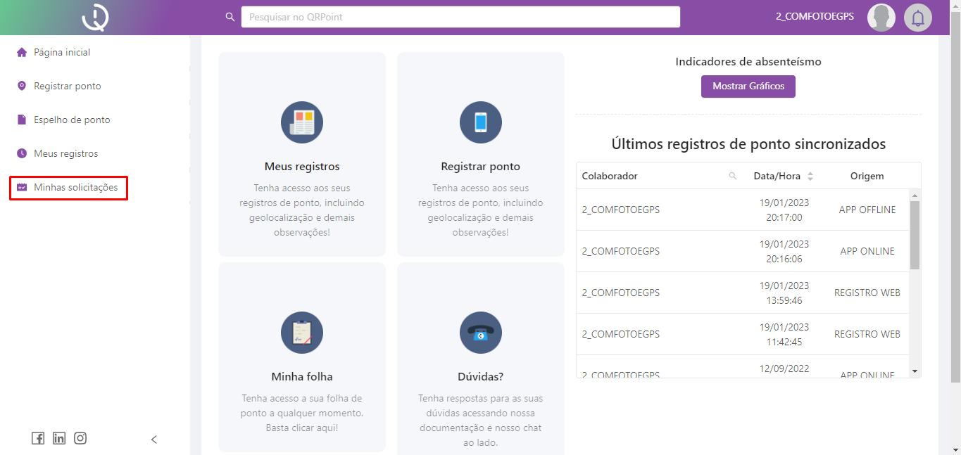 Para começar, na tela inicial do Colaborador terá uma nova seção, a de Minhas Solicitações: