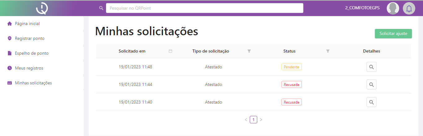Clicando, todas as solicitações de atestados feitas pelo colaborador irão aparecer