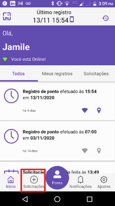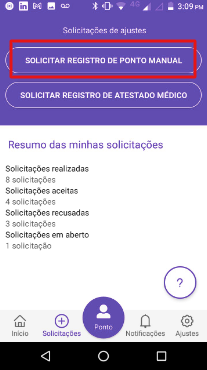 Em seguida, clique na opção Solicitar registro de ponto manual.