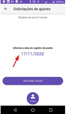 Logo depois, informe qual a data do registro do ponto solicitado.