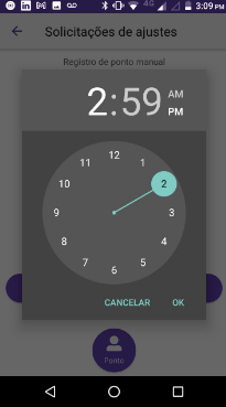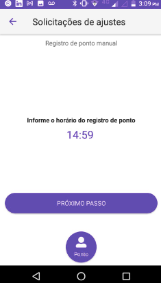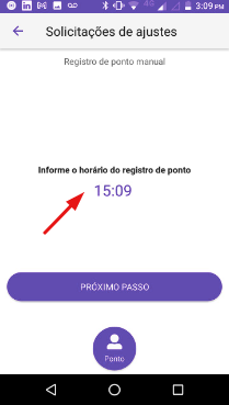 Em seguida, informe o horário do registro do ponto e siga para o próximo passo