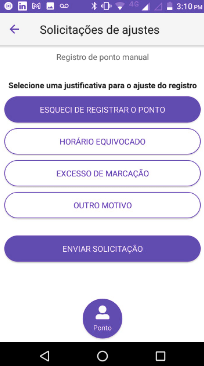 Depois selecione uma justificativa para o ajuste do registro e clique em Enviar solicitação.