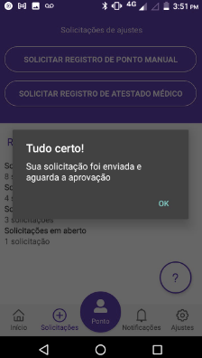 Após concluir a solicitação, mostrará a mensagem que o seu ajuste manual foi solicitado com sucesso.