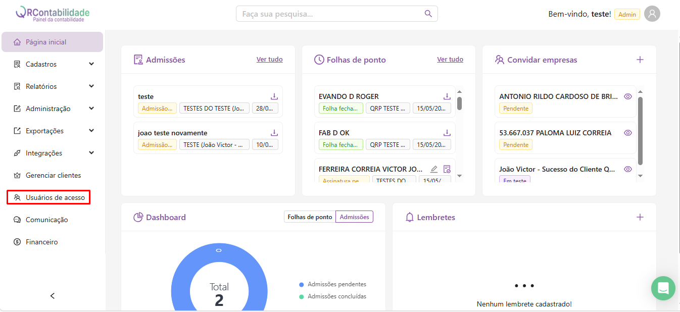 Nesse artigo você encontra todas as informações necessárias para criar um Usuário de Acesso no Painel do Contador (QRContabilidade).