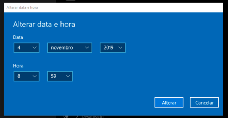 Agora vamos alterar de forma manual o seu horário, apertando no botão Definir a data e a hora manualmente, que abrirá a seguinte tela: